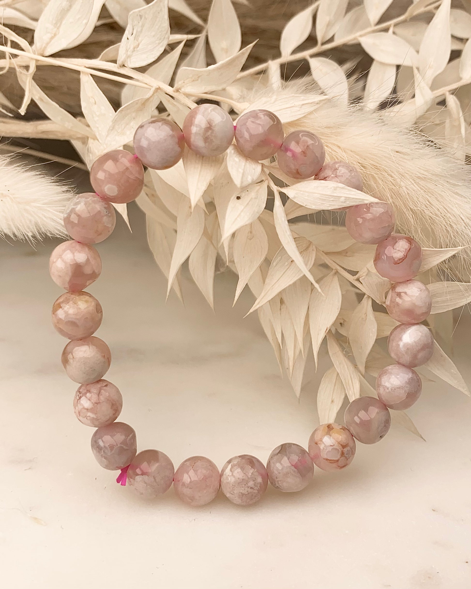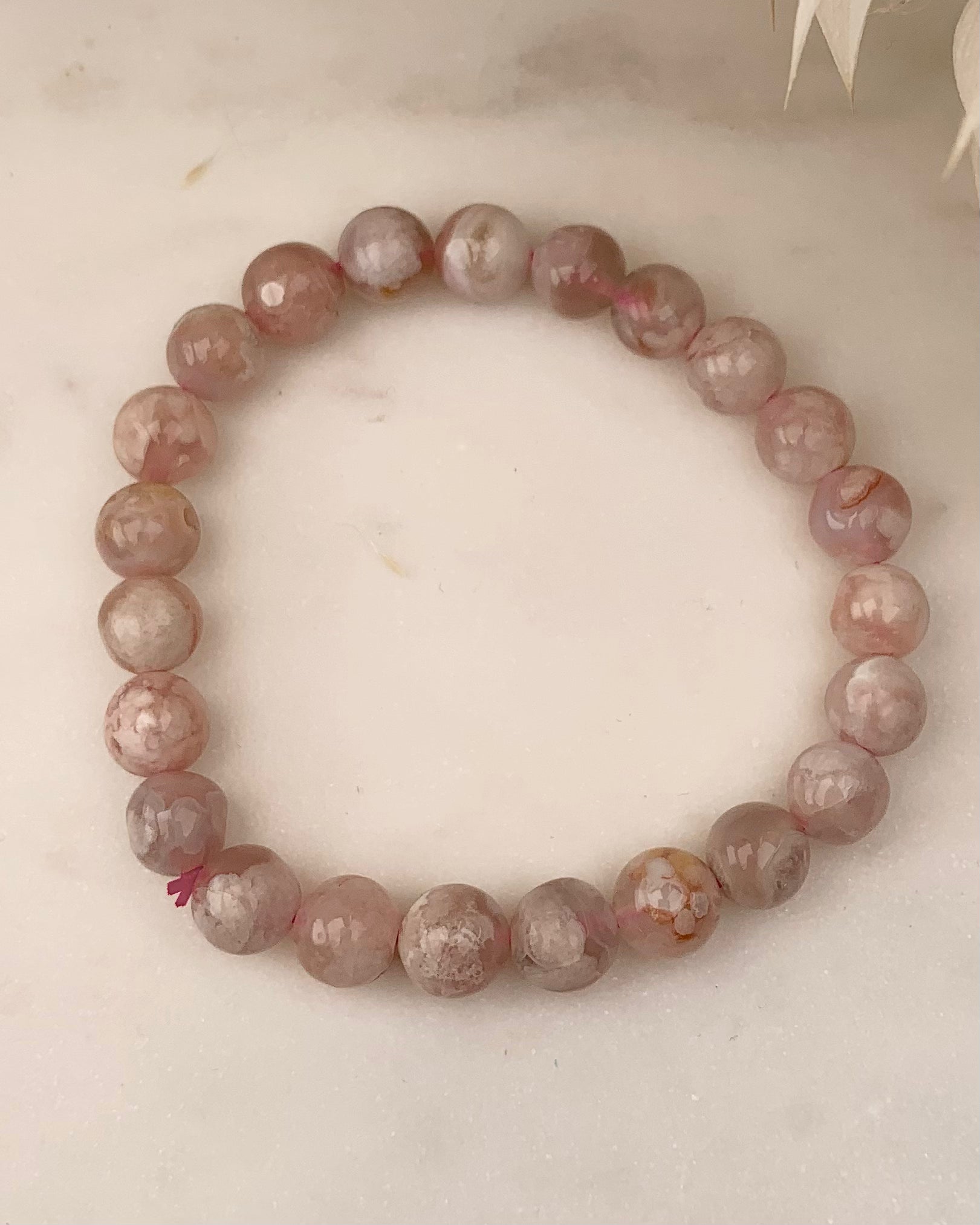Persönliches Wachstum, Verfolgen der eigenen Träume. Blumenachat kann dich dabei unterstützen, zu deinem wahren Selbst zu finden. Die kleinen Knospen und Blumenmuster symbolisieren deine persönliche Entwicklung und die sanfte und gleichzeitig starke Wirkung des Blumenachats kann dir dabei helfen, deine Bestimmung zu finden und deine Träume zu leben. Außerdem ist der Blumenachat ein wundervoller Helfer beim Manifestieren.
