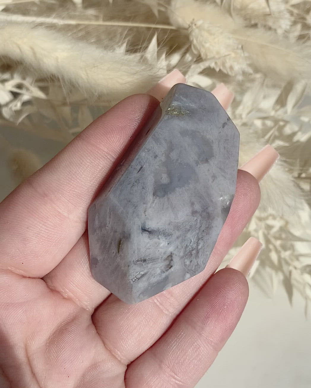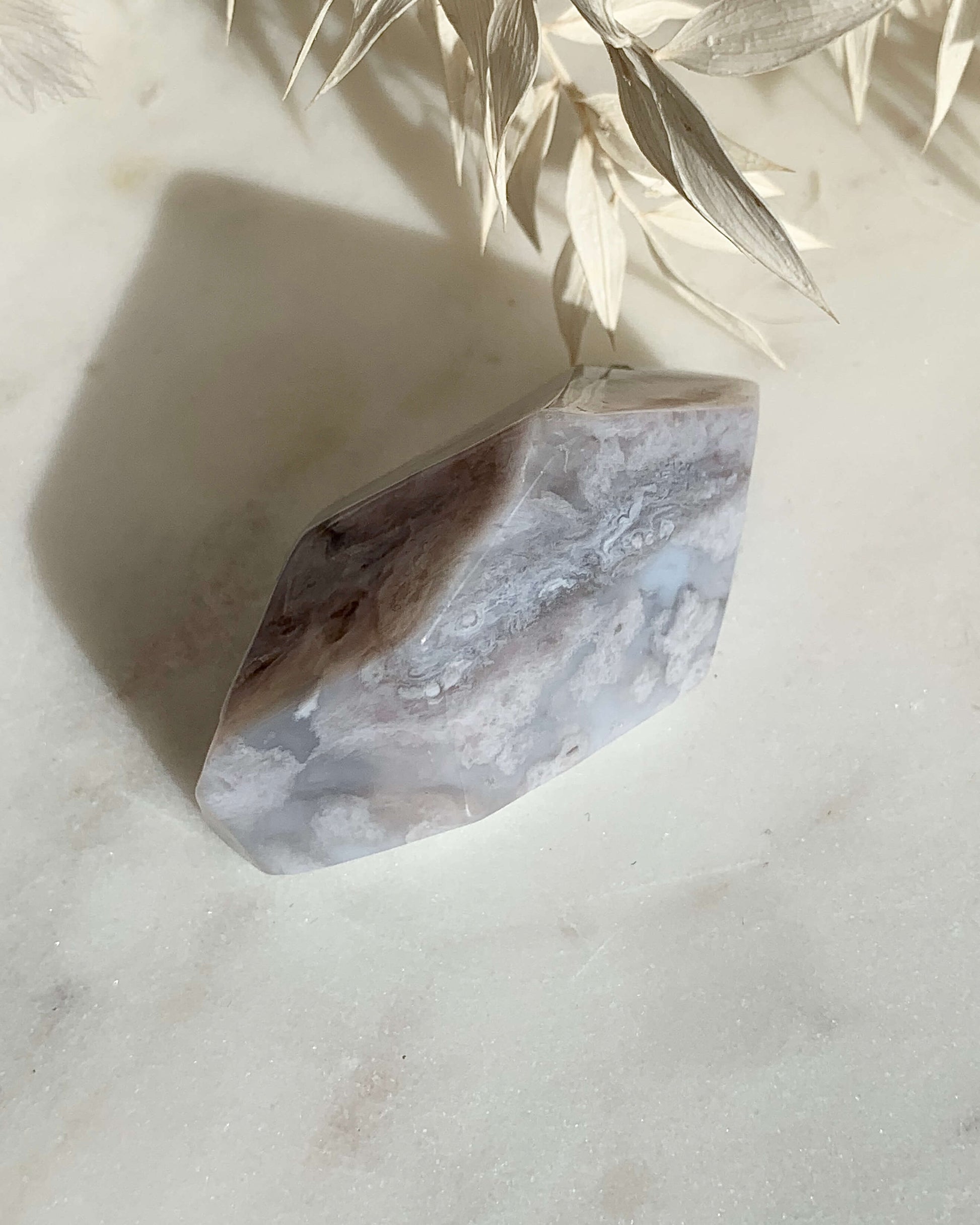 Persönliches Wachstum, Verfolgen der eigenen Träume. Blumenachat kann dich dabei unterstützen, zu deinem wahren Selbst zu finden. Die kleinen Knospen und Blumenmuster symbolisieren deine persönliche Entwicklung und die sanfte und gleichzeitig starke Wirkung des Blumenachats kann dir dabei helfen, deine Bestimmung zu finden und deine Träume zu leben. Außerdem ist der Blumenachat ein wundervoller Helfer beim Manifestieren.