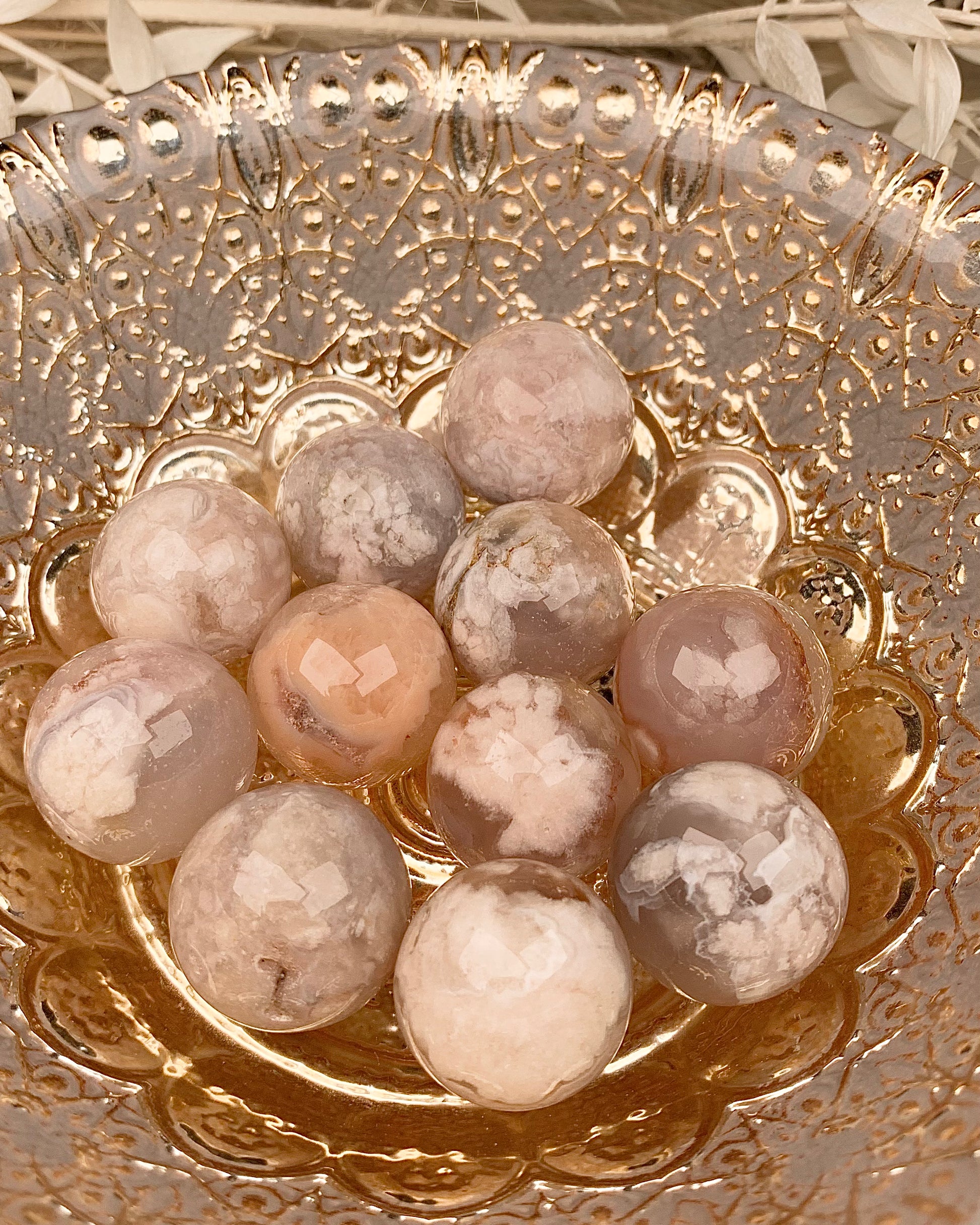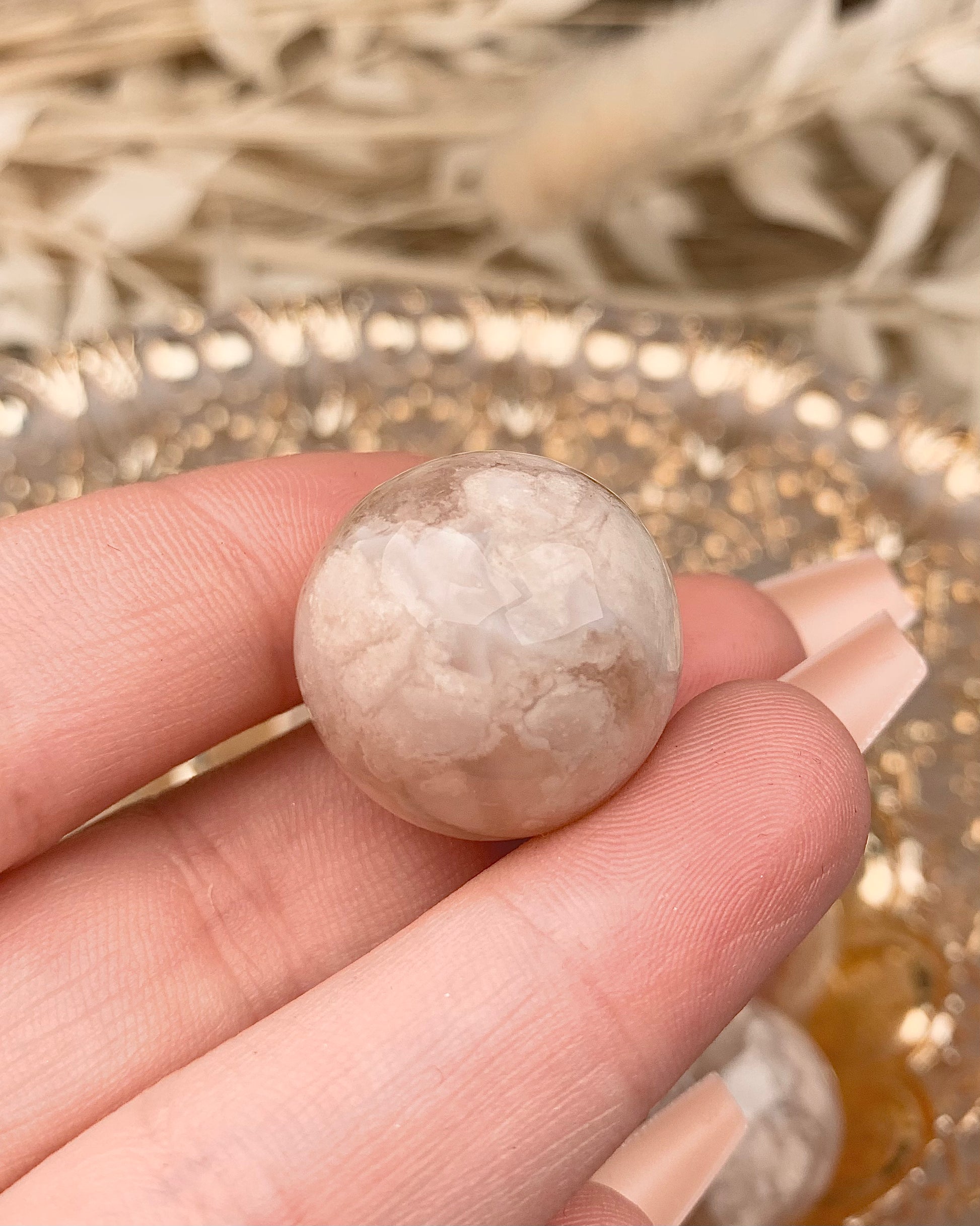 Eine zuckersüße Blumenachatkugel, intuitiv nur für dich ausgewählt.