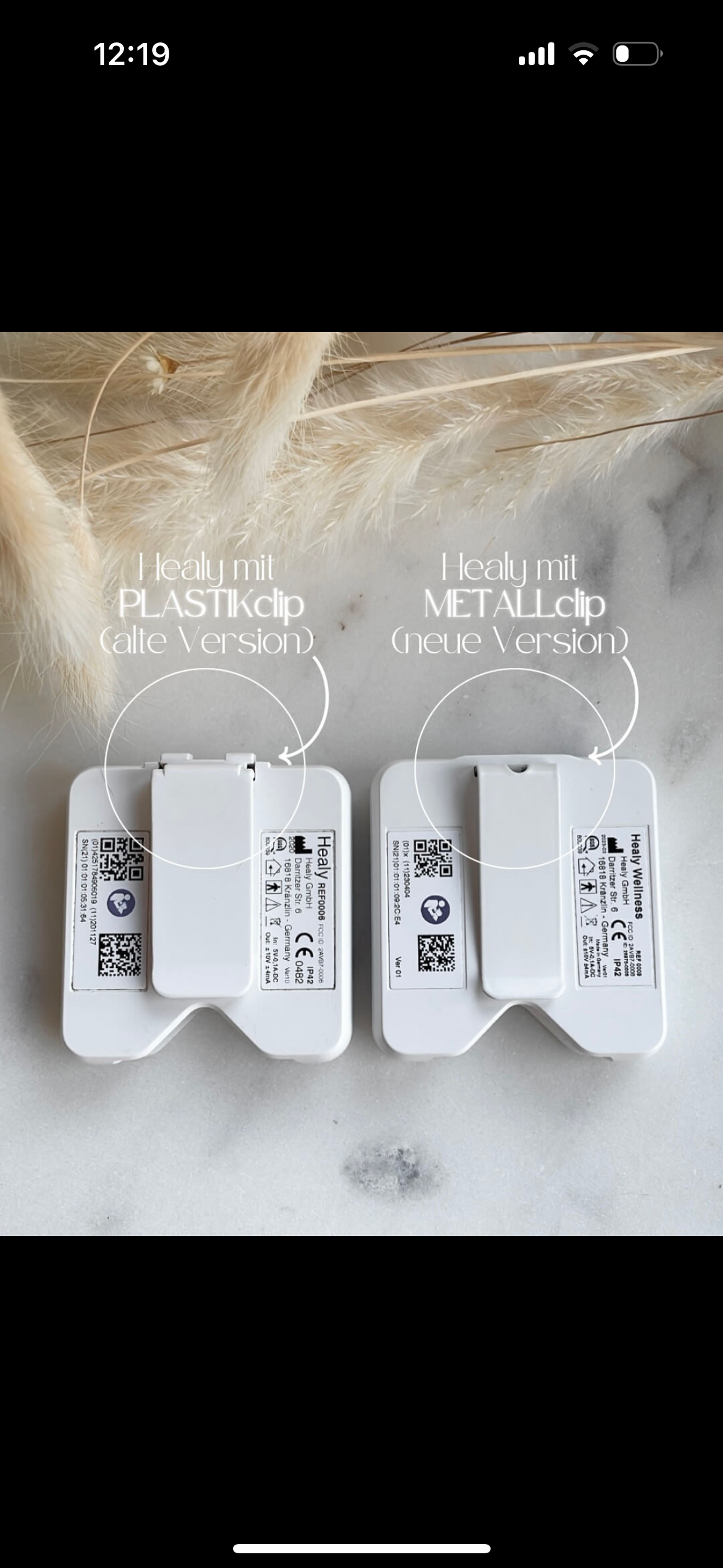 Befestigung am Healy: Die kleine Kette zur Befestigung am Clip des Healys ist entweder an die ältere Healy Version (mit Plastikclip) oder die aktuelle Healy Version (mit Metallclip) angepasst, bitte wähle oben entsprechend aus, ob dein Healy einen Plastik-oder Metallclip hat.