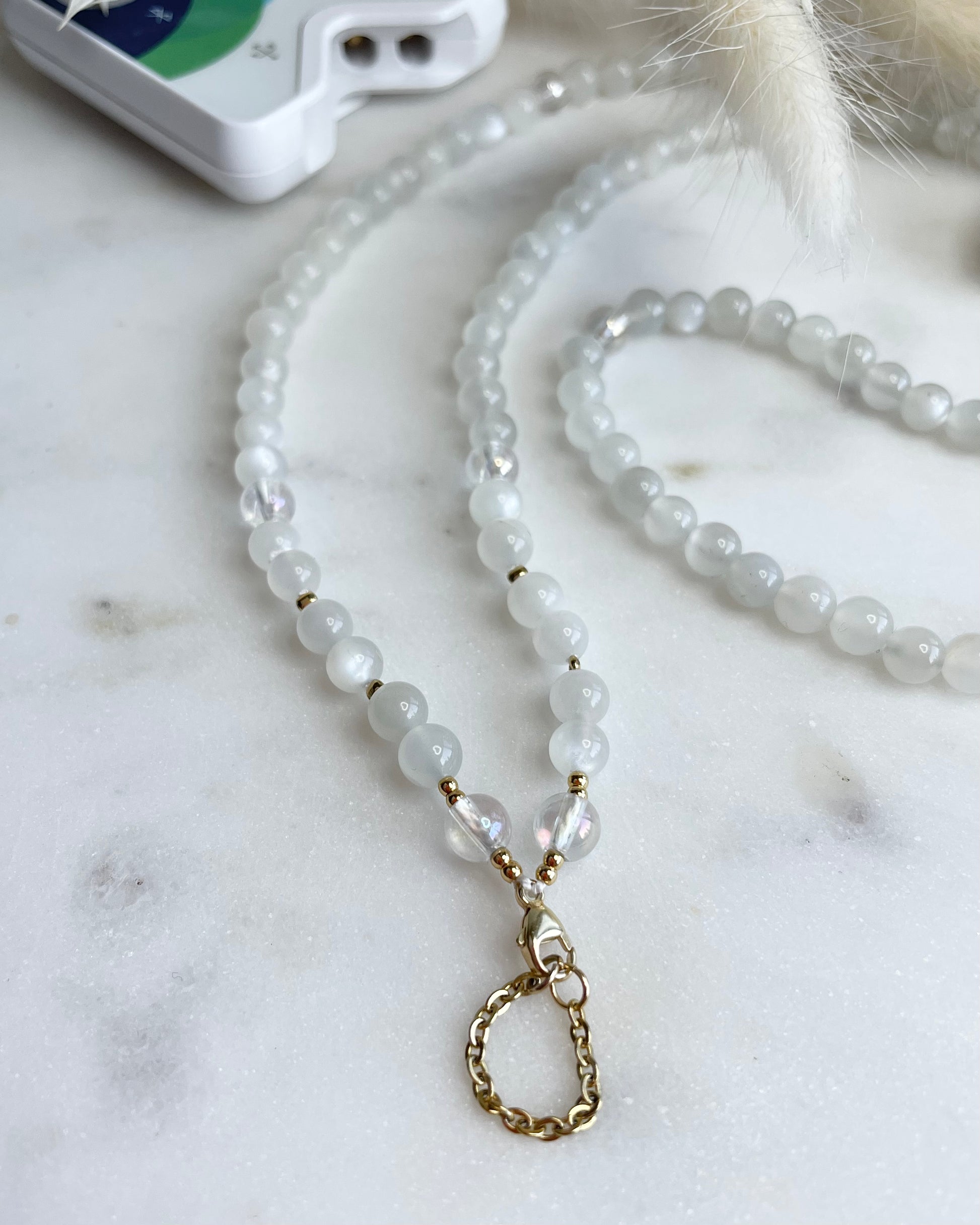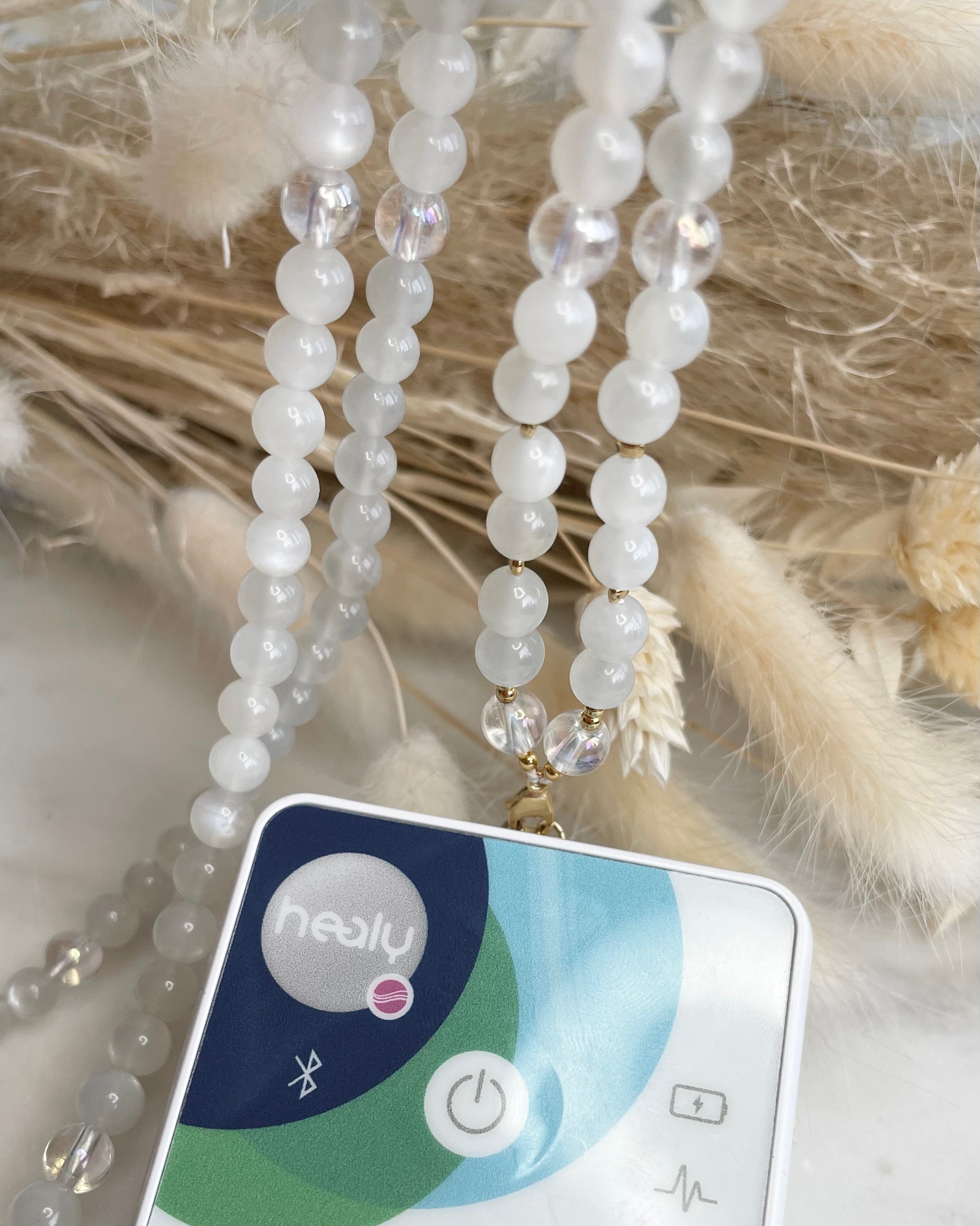 Der weiße Mondstein ist ein Symbol für Intuition und weibliche Energie. Er stärkt deine Intuition und schafft emotionale Balance. Der Mondstein unterstützt den Ausdruck deiner inneren Weisheit und verbindet dich mit der sanften Energie des Mondes. Verwendet in der Healy-Kristallkette kann der Mondstein deine innere Schönheit zum Strahlen bringen und eine tiefe Verbindung mit deiner femininen Kraft herstellen.