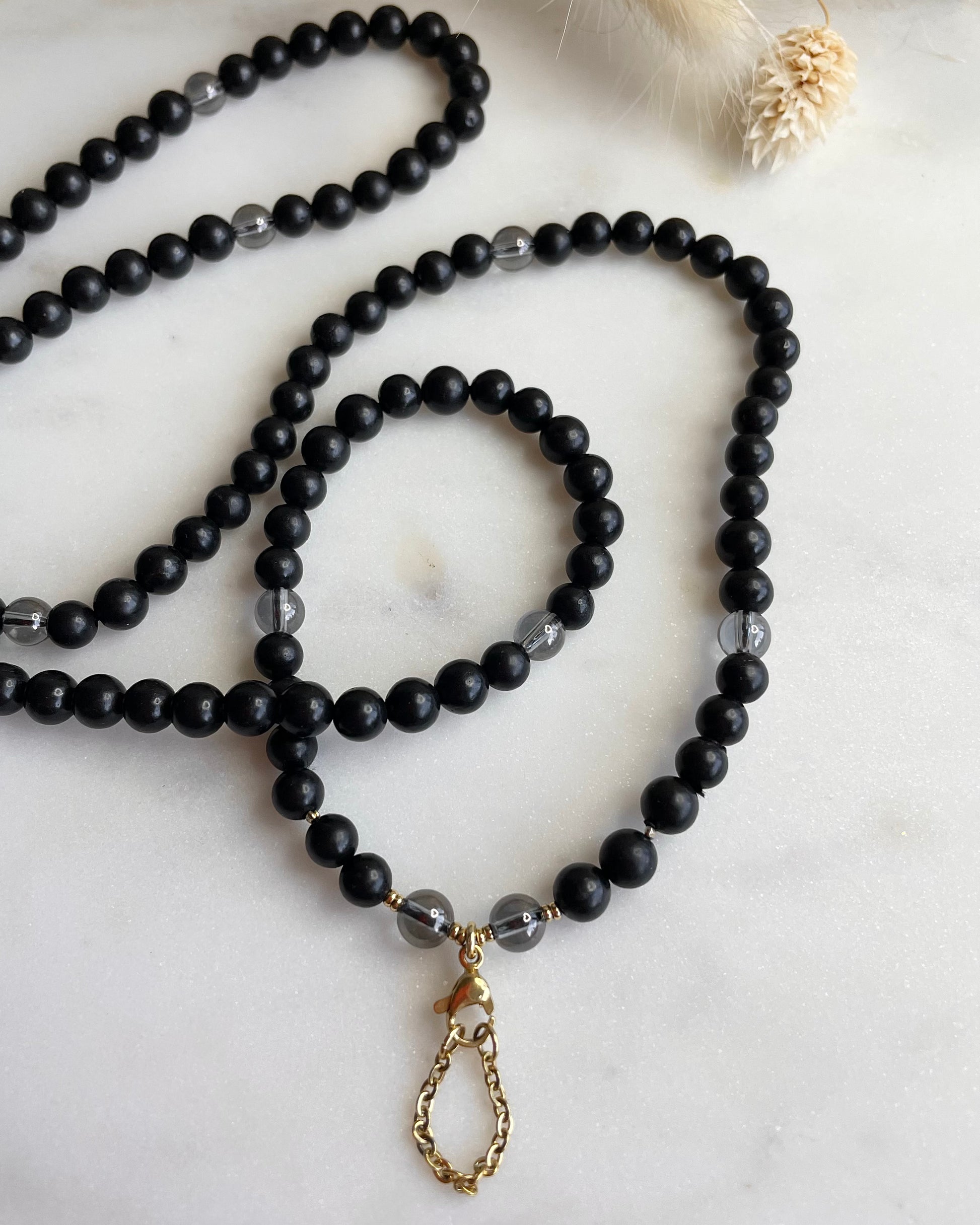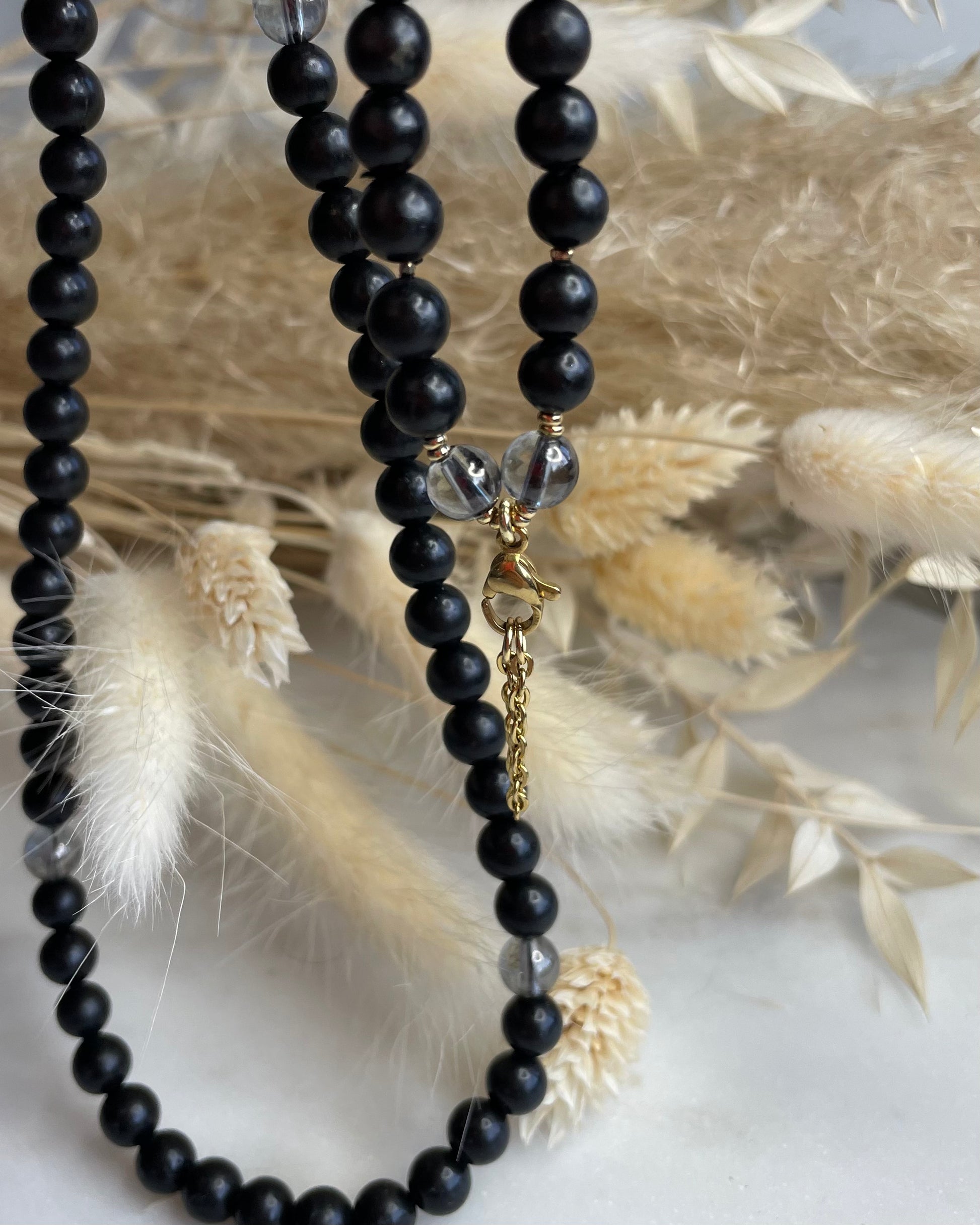 Trage diese Schungit Kristallhalskette als Schutzschild gegen die Überstimulation der modernen Welt. Spüre, wie der Schungit eine harmonische Balance schafft und negative Energien neutralisiert. Seine erdende Energie verbindet uns mit der Natur und unterstützt uns dabei, in unserer Mitte zu bleiben.