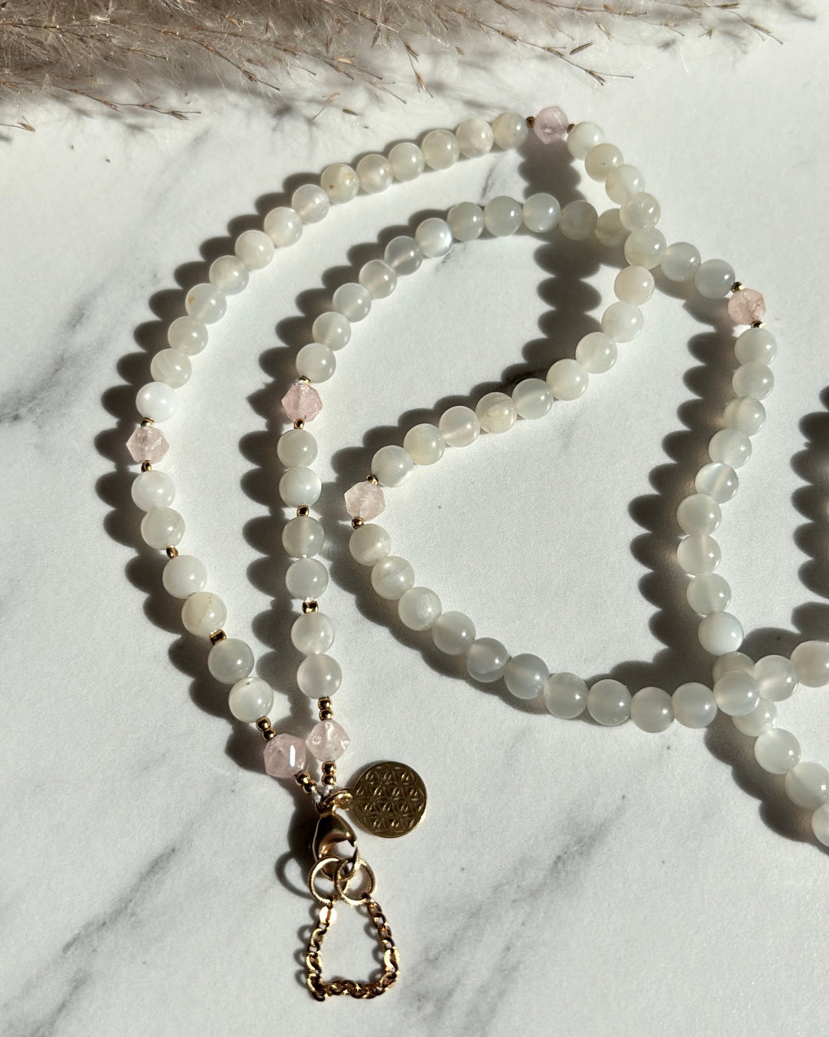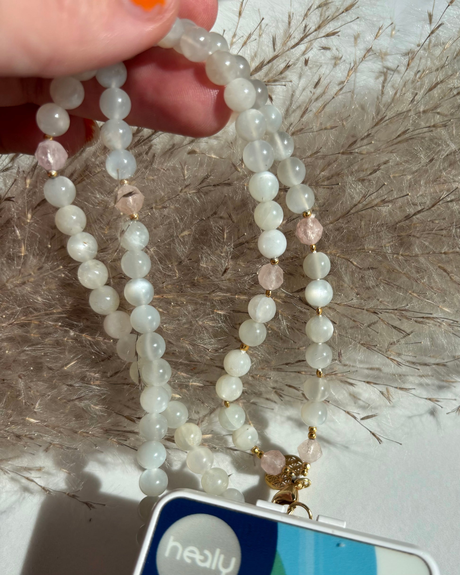 Der weiße Mondstein ist ein Symbol für Intuition und weibliche Energie. Er stärkt deine Intuition und schafft emotionale Balance. Der Mondstein unterstützt den Ausdruck deiner inneren Weisheit und verbindet dich mit der sanften Energie des Mondes. Verwendet in der Healy-Kristallkette kann der Mondstein deine innere Schönheit zum Strahlen bringen und eine tiefe Verbindung mit deiner femininen Kraft herstellen.