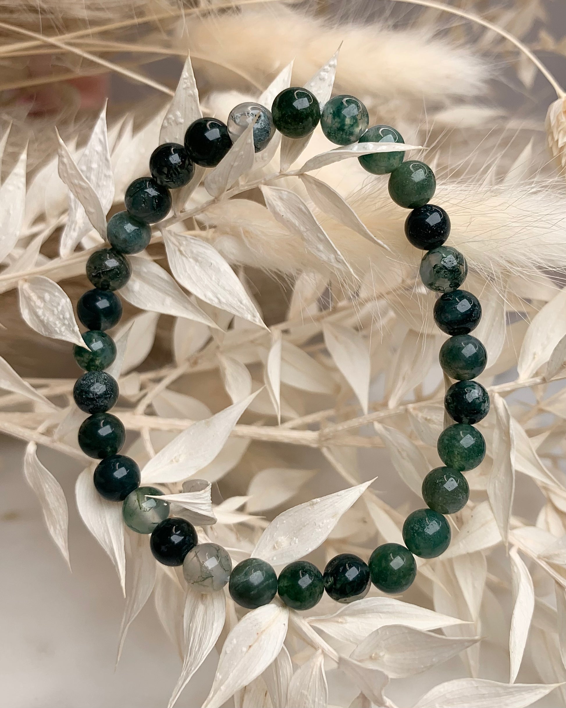 Erdung, Neubeginn, emotionale Balance, Ruhe. Wie ein langer Spaziergang im Wald an einem heißen Sommertag, bringt der Moosachat Ruhe und Balance in dein Leben. Beim Betrachten des Moosachats fühlt es sich so an, als würde man mit Mama Gaya herself interagieren. Die starke und klärende Erdungsenergie unterstützt dich dabei, alle Negativität und allen Stress zu vergessen, verbindet dich mit deiner wahren Essenz und hinterlässt das Gefühl, endlich wieder frei zu atmen zu können.