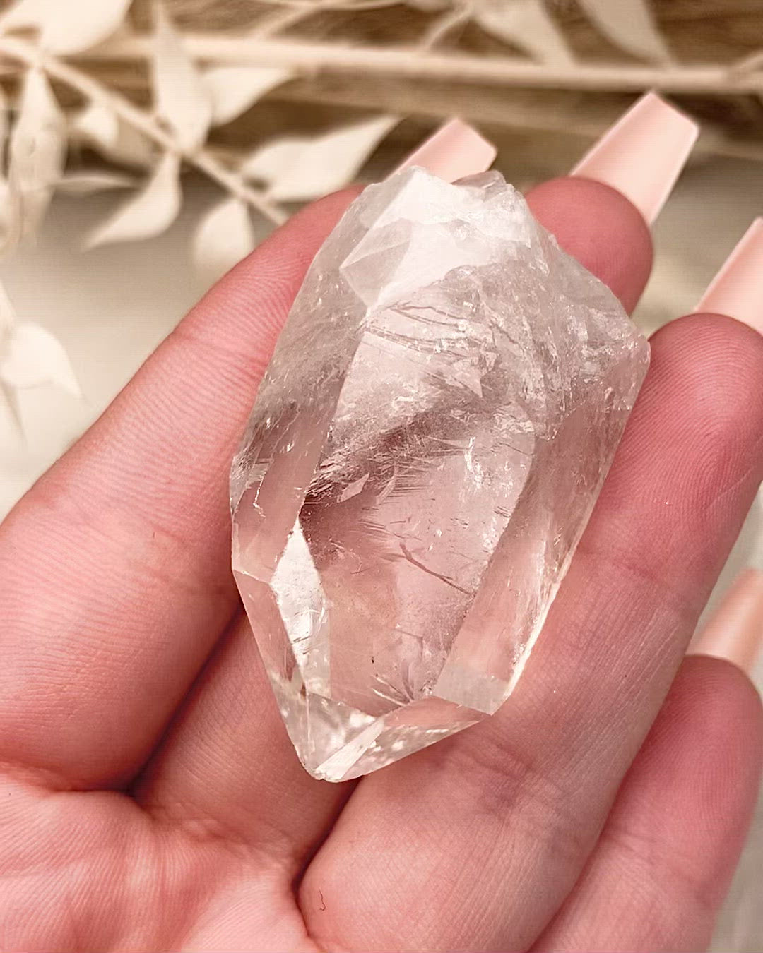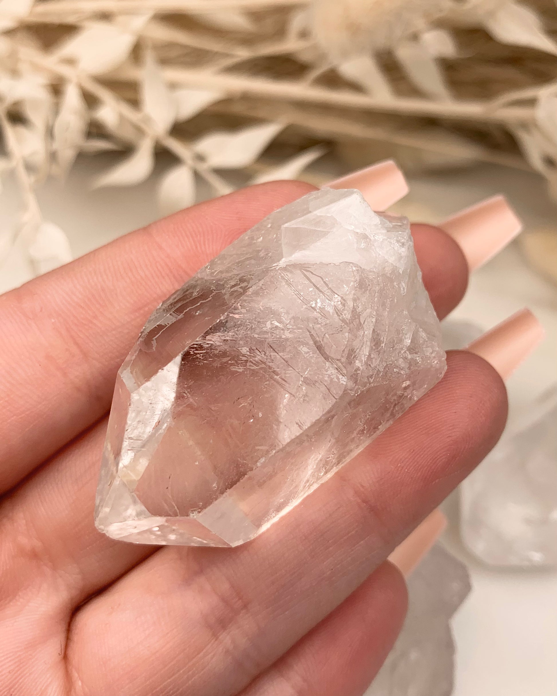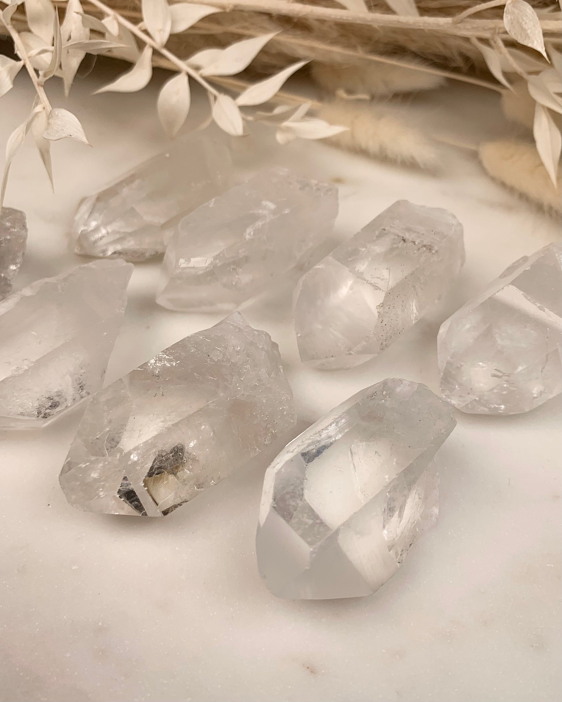 Eine natürliche, kleine und hochglänzende Bergkristall Spitze, intuitiv für dich ausgewählt. Die Spitzen wurden nicht geschliffen oder bearbeitet, sondern entstammen so Mama Gaya.