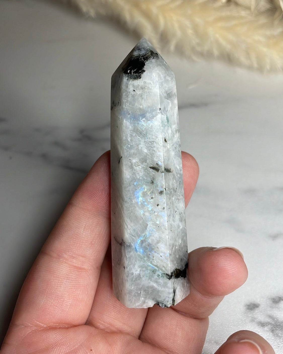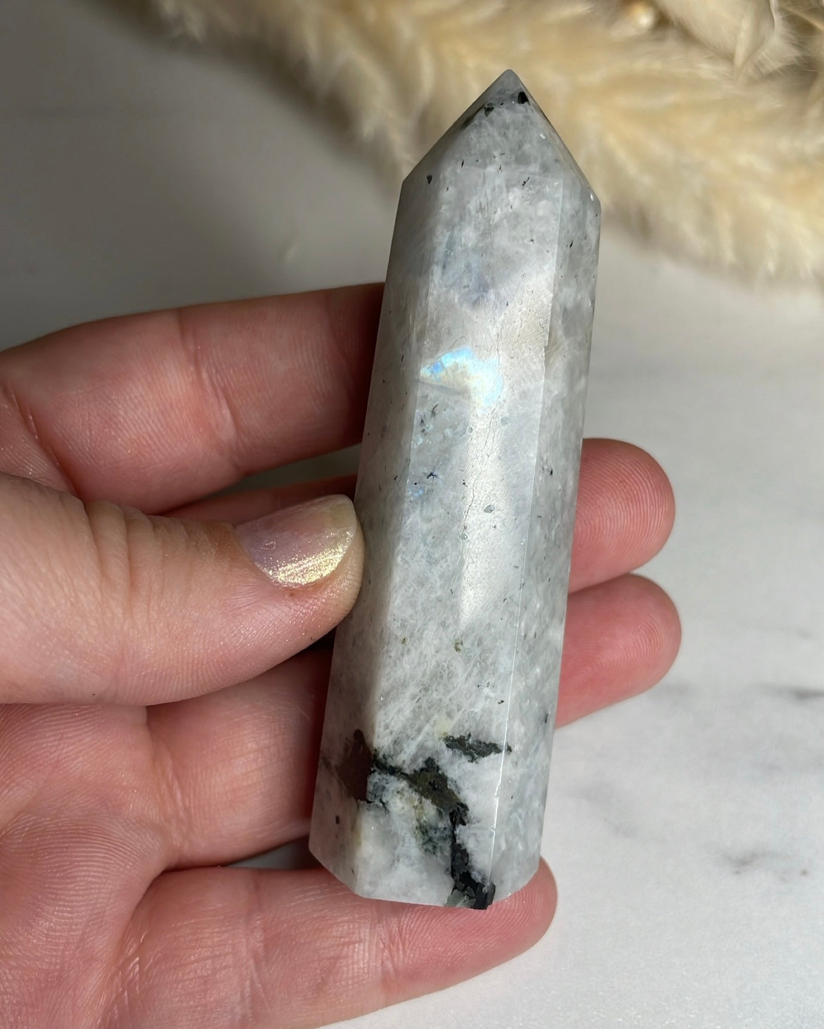 REGENBOGENMONDSTEIN TURM/ weißer Labradorit Turm 24c