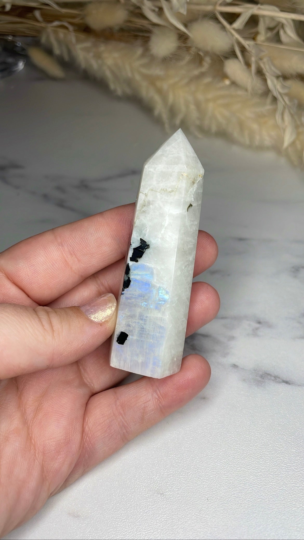 REGENBOGENMONDSTEIN TURM/ weißer Labradorit Turm 24p