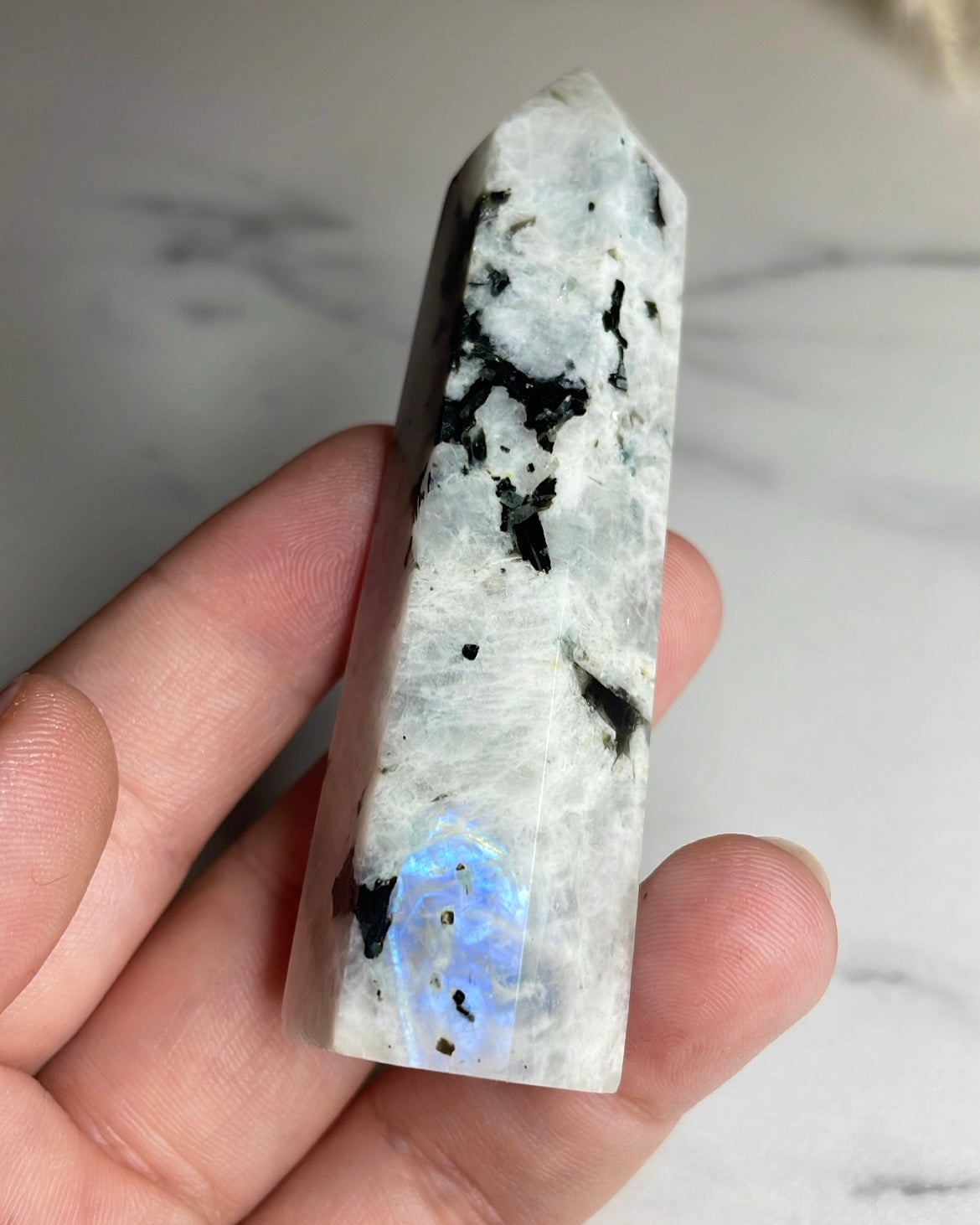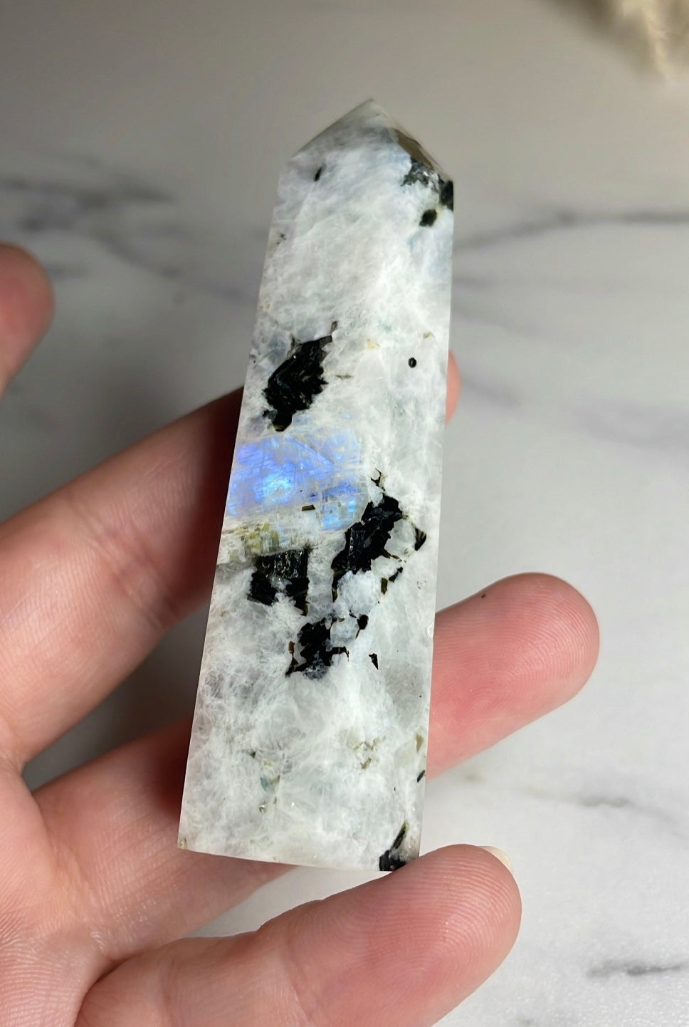 REGENBOGENMONDSTEIN TURM/ weißer Labradorit Turm 25m