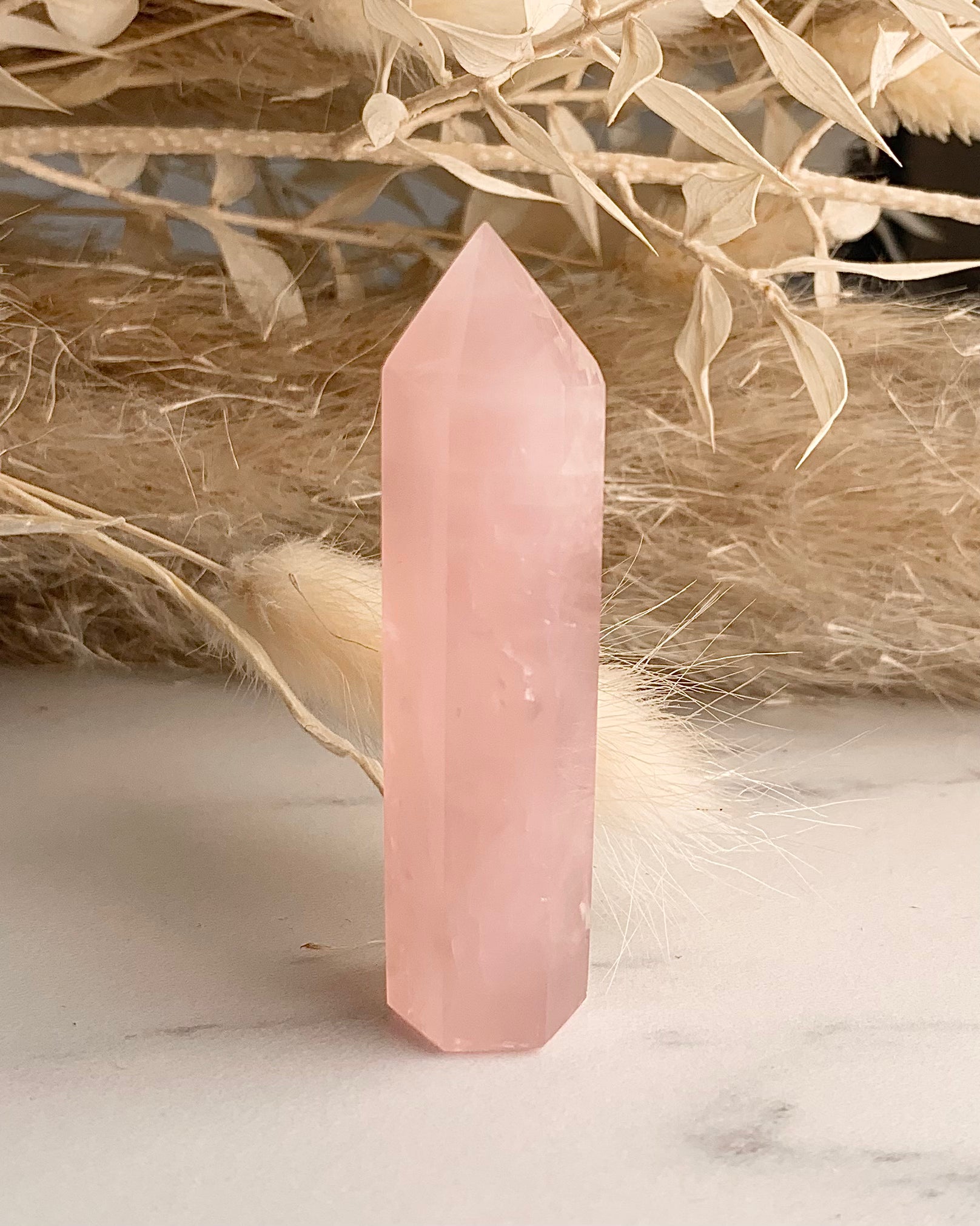 Süßes, tief pinkes Rosenquarz Türmchen.