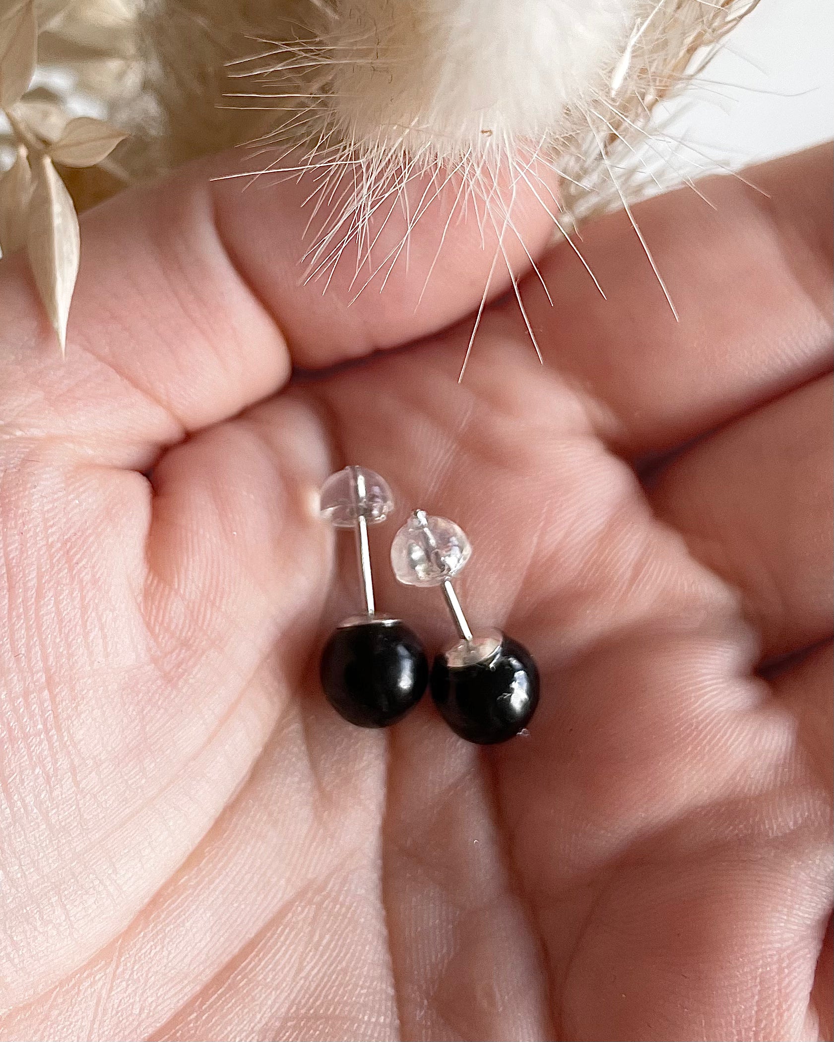 Edle Schungit Ohrringe/ Ohrstecker mit 8mm Kugeldurchmesser. Der Stecker ist aus 925 Echtsilber 🤍✨