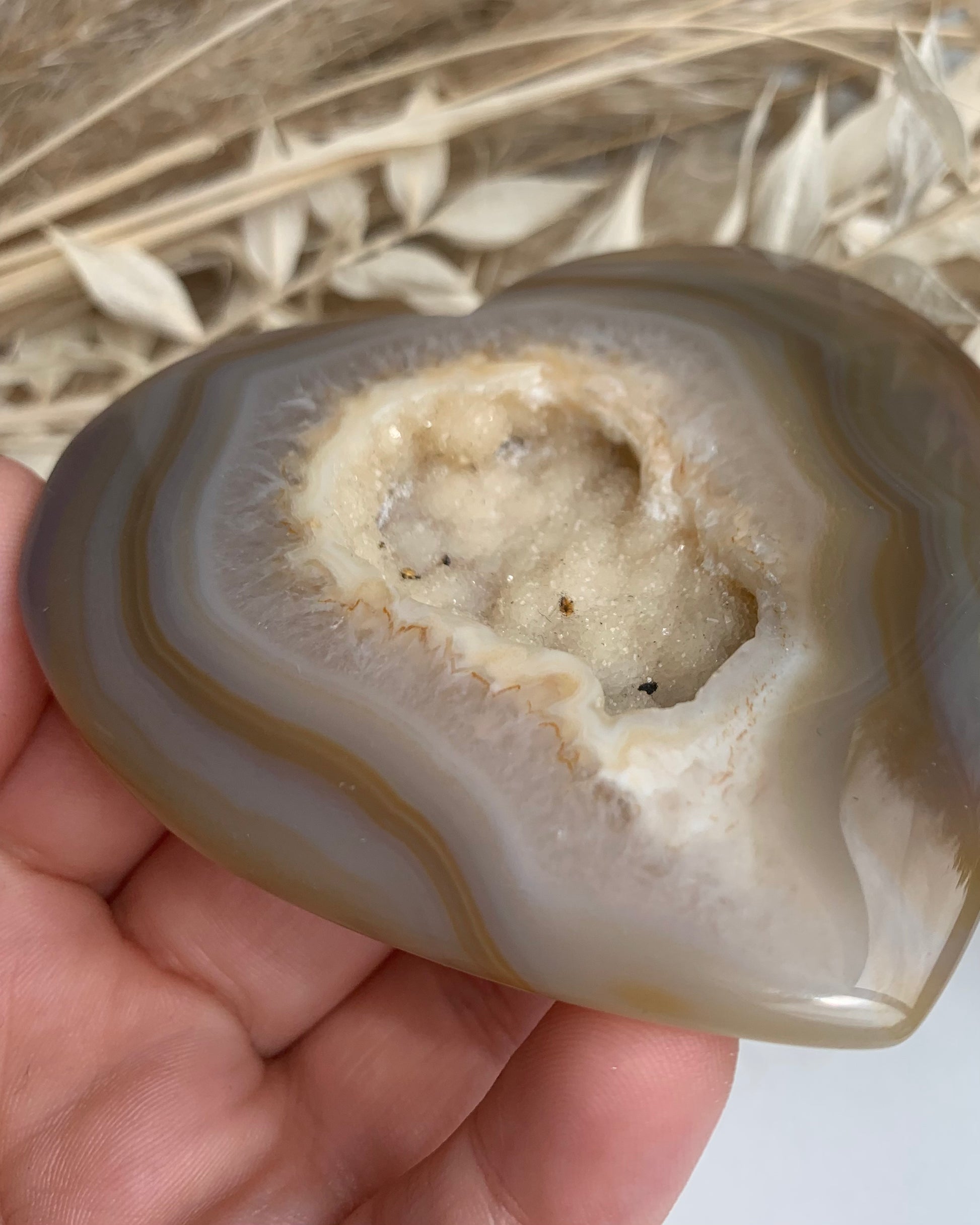 Erdung, Schutz, Balance. Achat ist ein sehr wichtiger Schutzstein, der negative Energien fernhalten kann. Er fördert deine innere Balance und wirkt mit seiner sanften Energie ausgleichend und erdend.